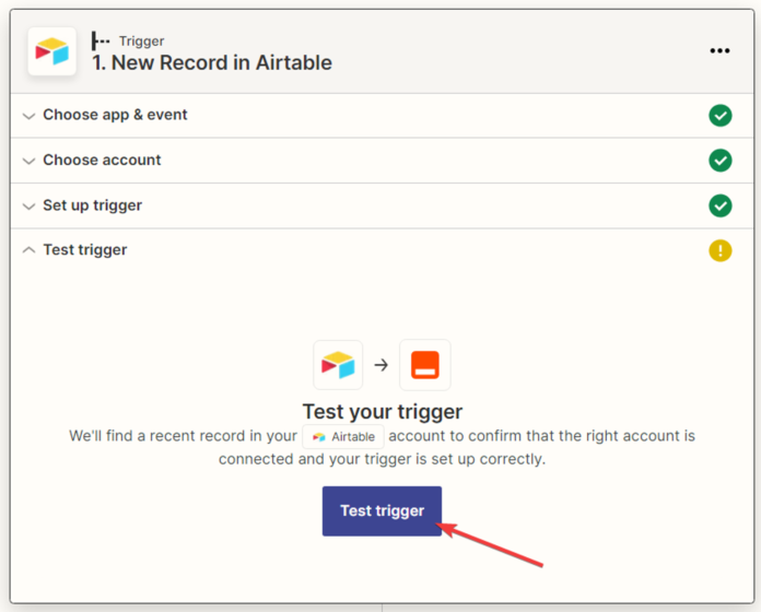 5. After that, you need to test the trigger by clicking “Test trigger.”