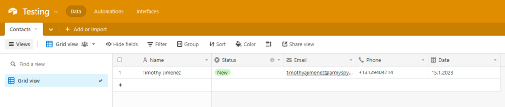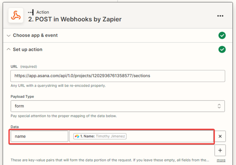 In the “Data” field, enter the parameter “name” and map this parameter to the corresponding Airtable variable.