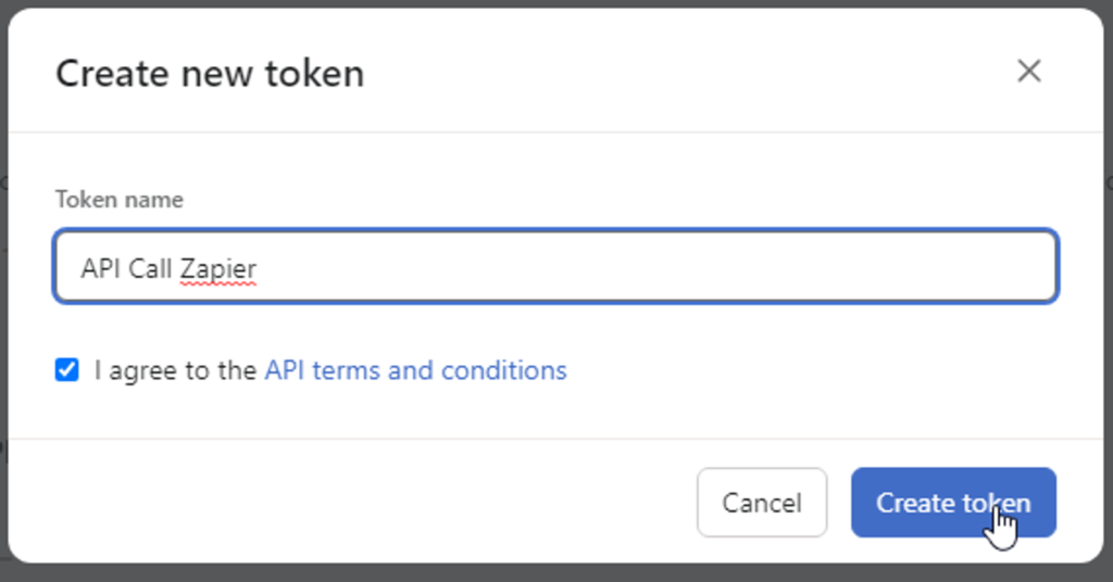 In the opened window, enter a chosen name for the token, check the checkbox, and click the “Create token” button.