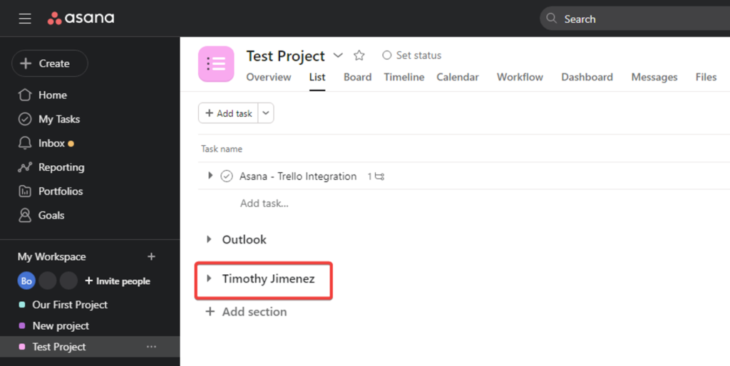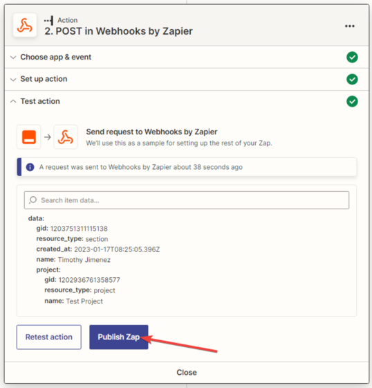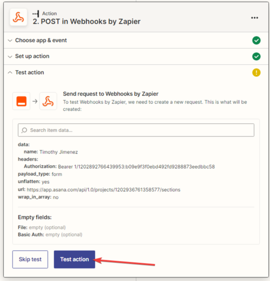 Creating a new section in Asana for new records in Airtable using webhooks (API Call).
