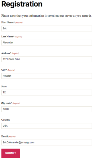 A Gravity Forms registration form should be created for the website user.