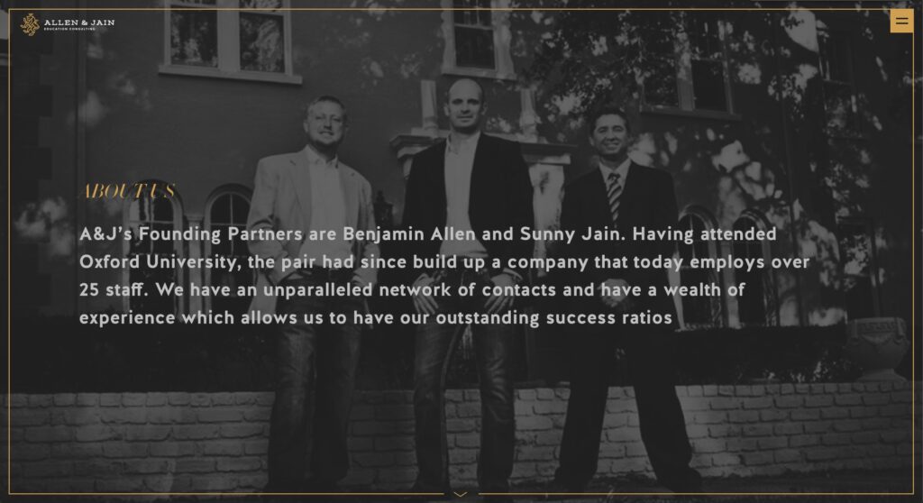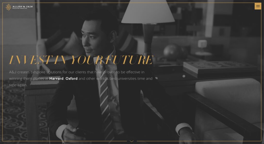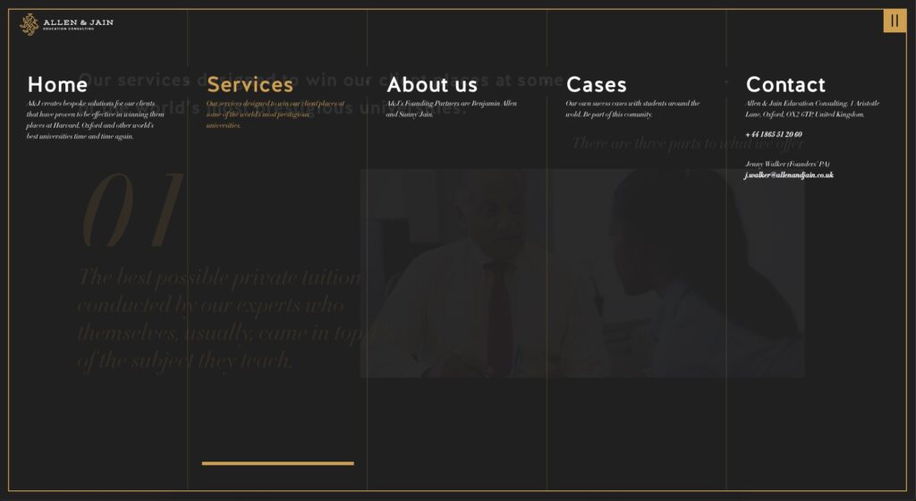 Innovative website layout for Allen and Jaine. A&J creates bespoke solutions for their clients that have proven to be effective at Harvard and Oxford